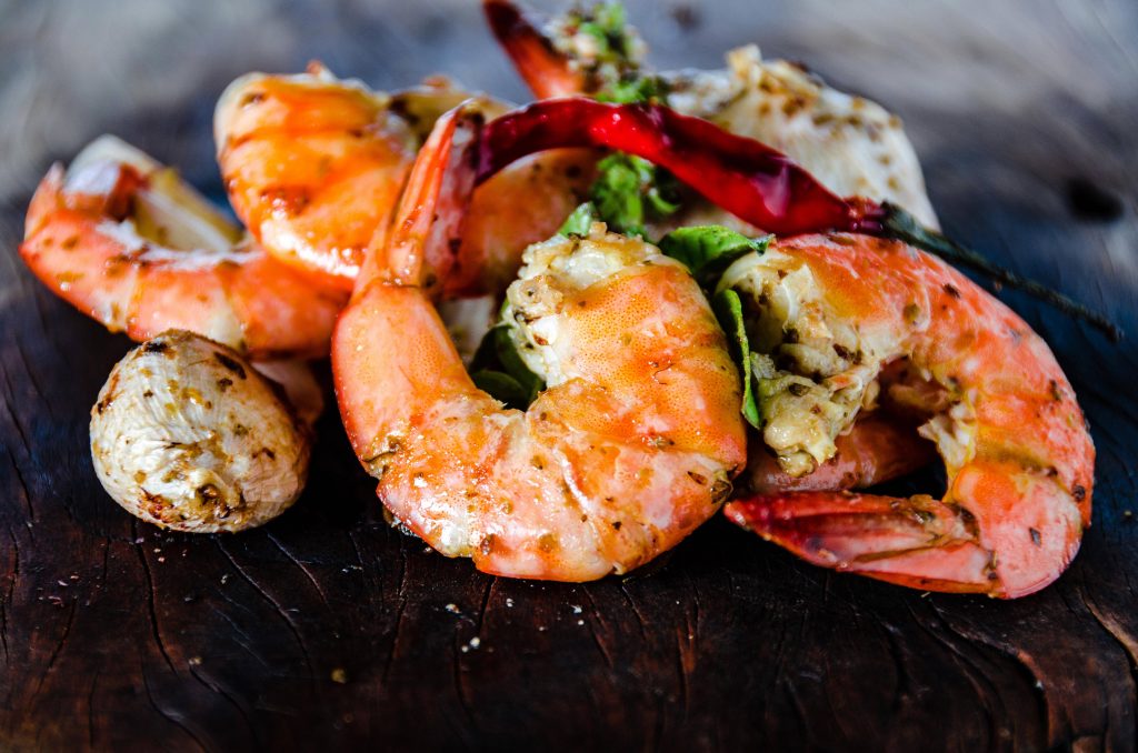 Ingrédients pour 4 personnes : 16 gambas crues décortiquées, 1 citron vert, 70 cl d’huile d’olive, 1 gousse d’ail, piment d’Espelette