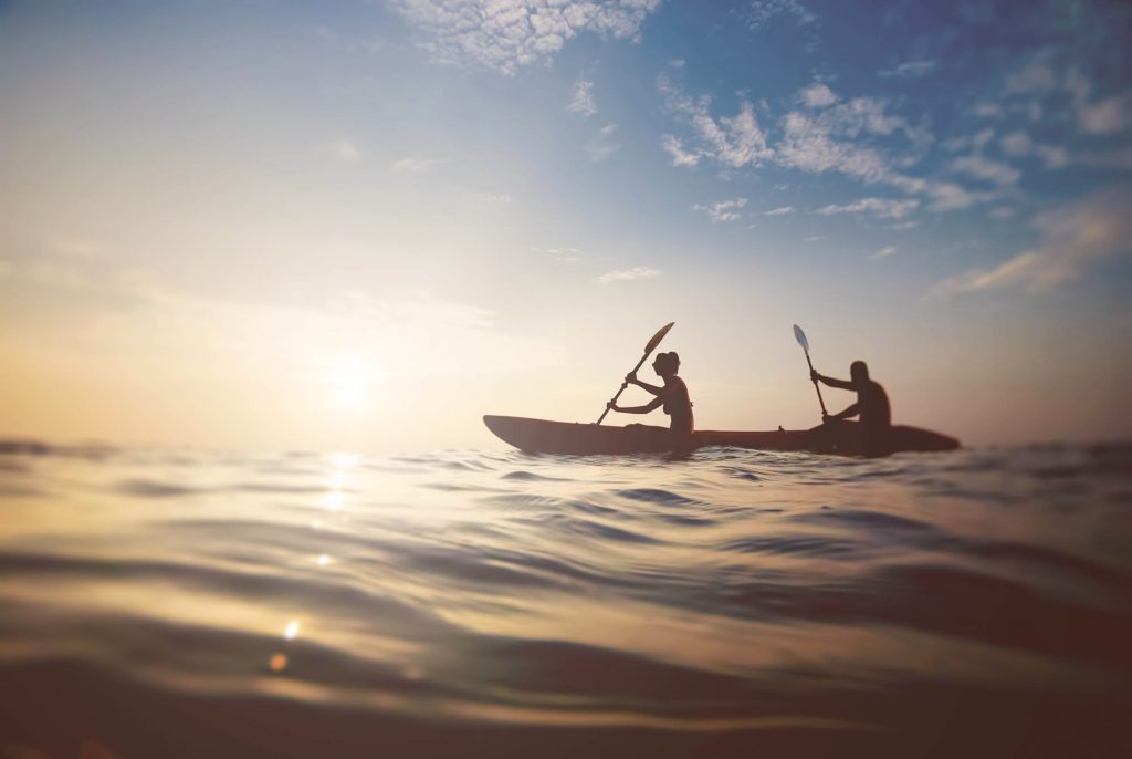Le petit groupe d’aventuriers s’équipe pour leur balade sur la lagune où ils se laisseront glisser tout en sérénité, avec tout de même quelques coups de pagaies, accompagnés de leur guide pour admirer un magnifique coucher de soleil sur l’eau.